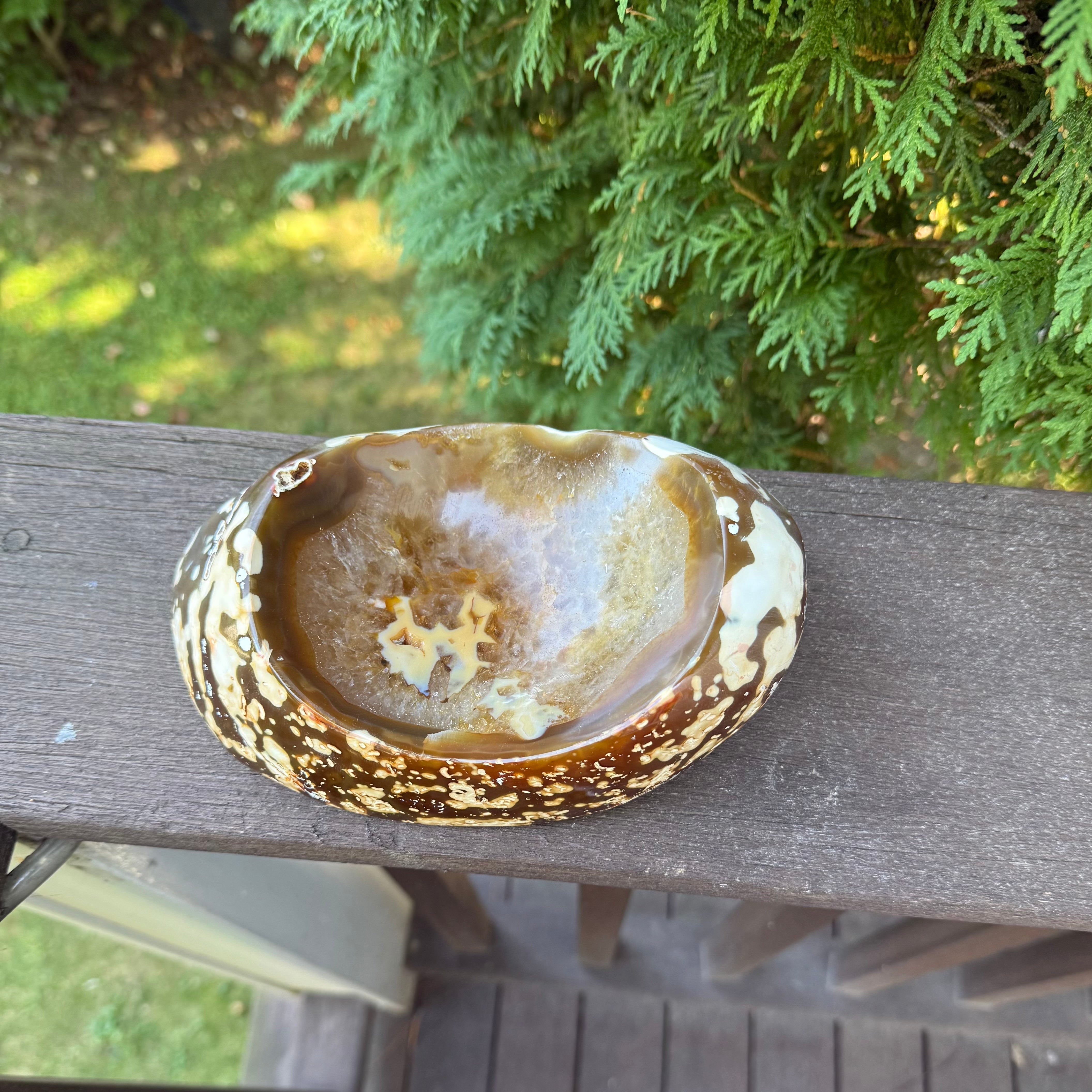 Bring natural beauty, artistry, and high vibrations into your home with this Agate Bowl, a rare statement centerpiece masterfully hand-carved by skilled Brazilian artisans. With its earthy tones, spotted patterns, and polished finish, this gemstone bowl is more than just décor—it’s a conversation piece, a sacred altar addition, and a meaningful gift for someone special.
